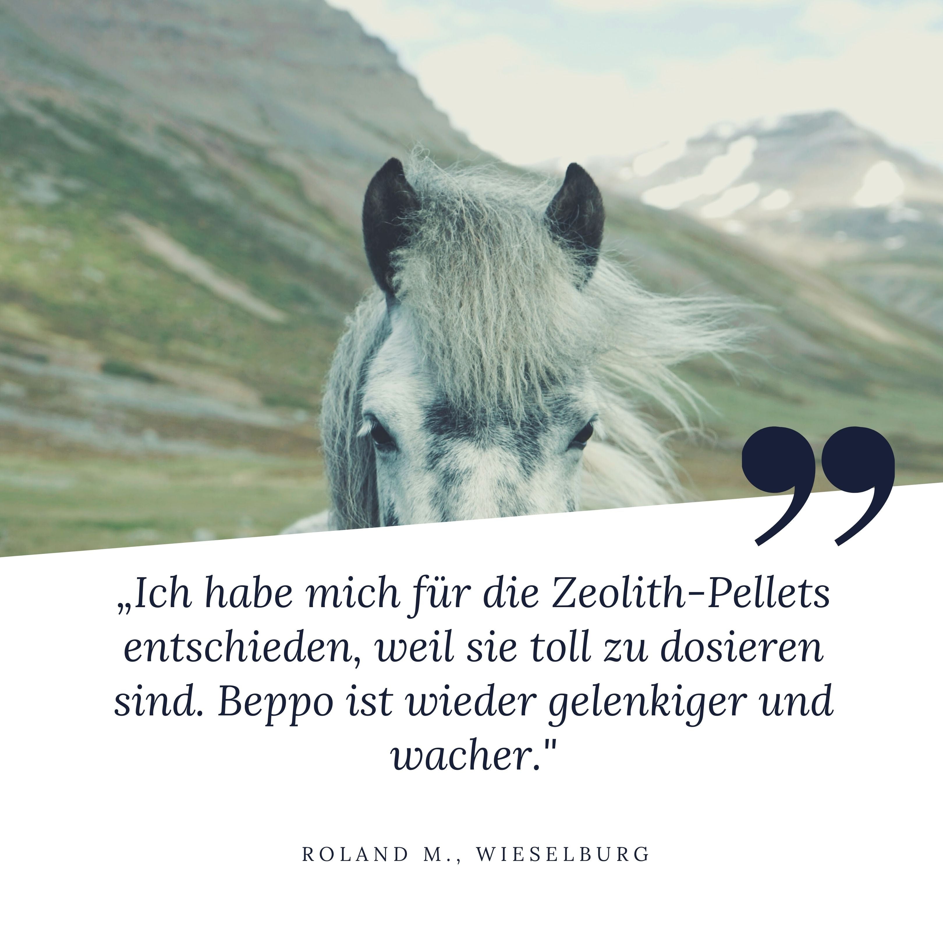 Sabrina L.“Mein Wallach hatte immer wieder Verdauungsprobleme, besonders in den Wintermonaten. Seit ich ihm die Zeolith-Pellets gebe, ist sein Kotwasser verschwunden und er wirkt insgesamt entspannter. Ich bin absolut überzeugt von der Wirkung!”