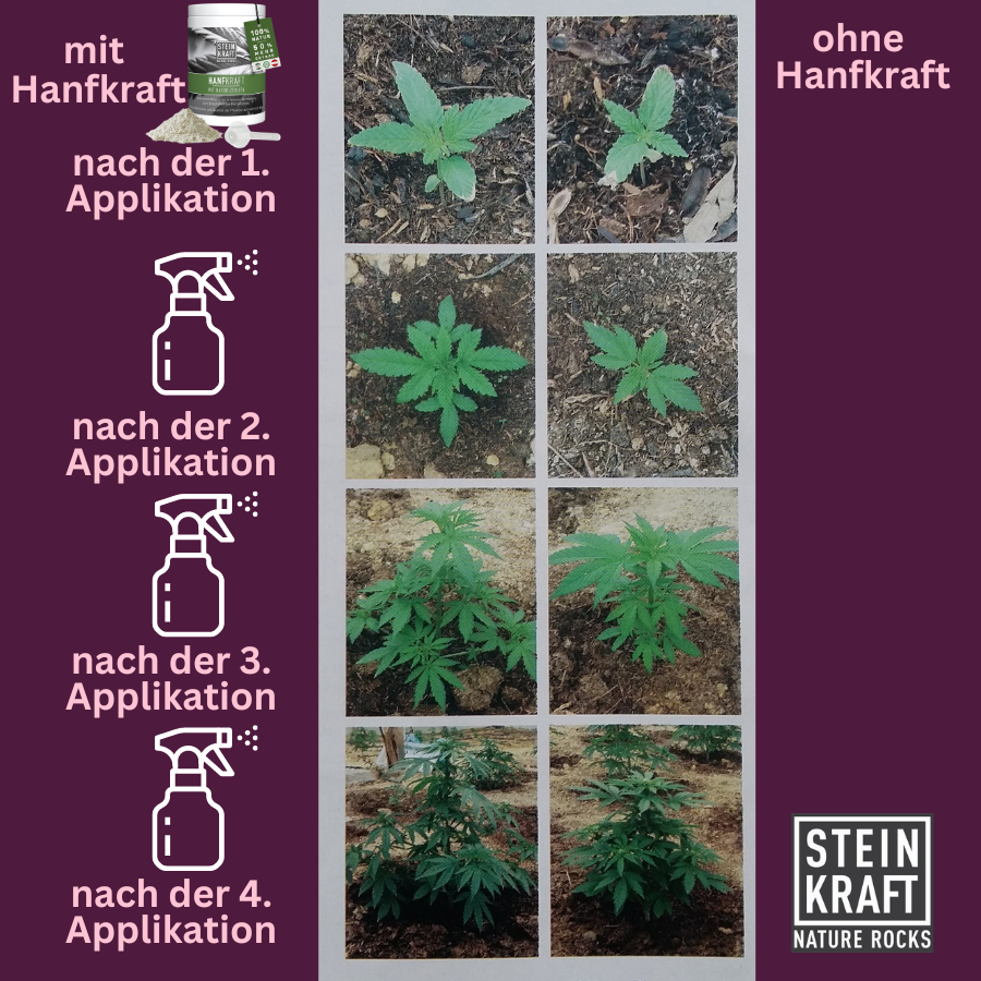 With 3 applications, 650g of HANFKRAFT is sufficient for at least 200 hemp plants.