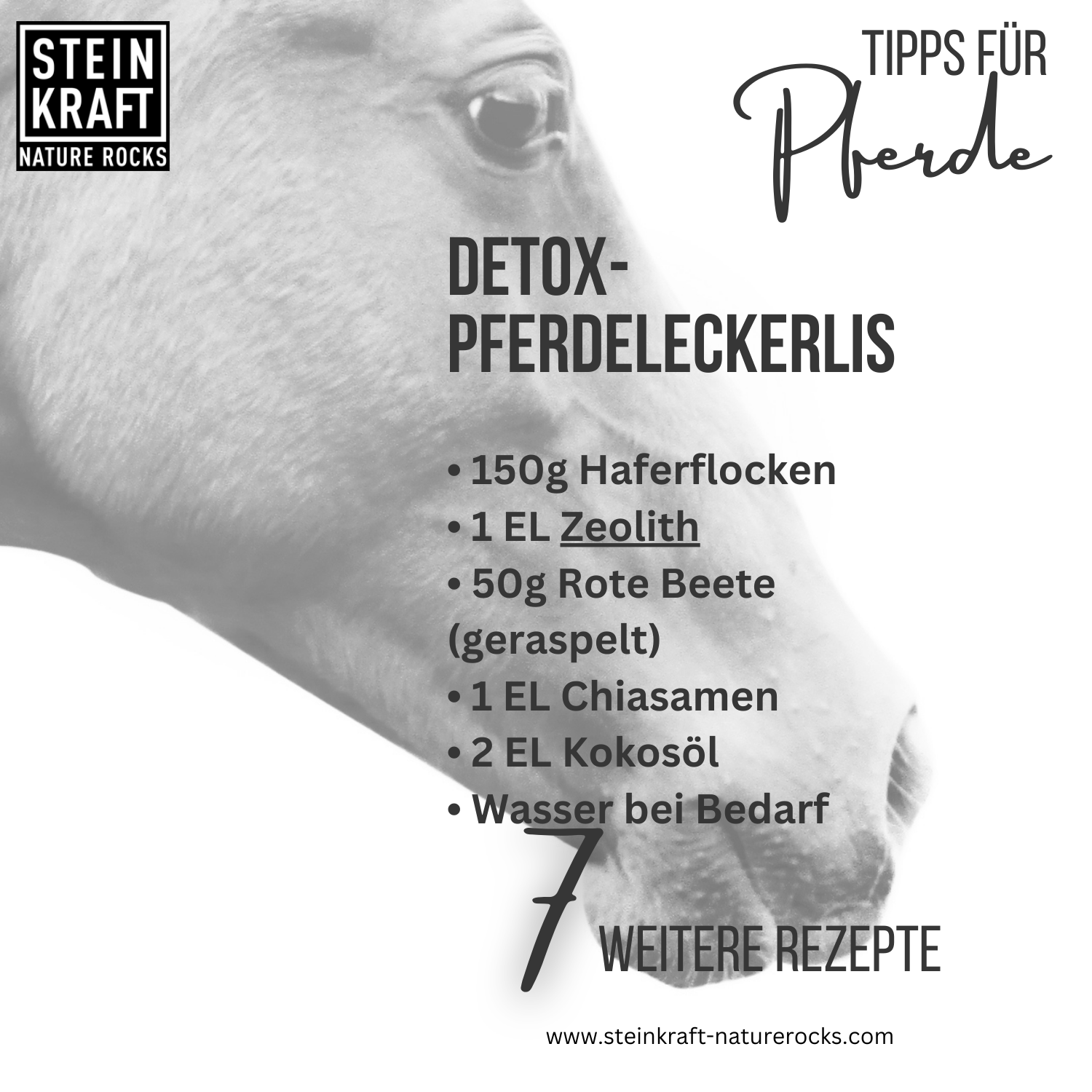 STEINKRAFT Bio-Leckerlis mit Zeolith für Pferde - So lobst du dein Pferd richtig und förderst gleichzeitig sein Wohlbefinden.