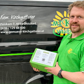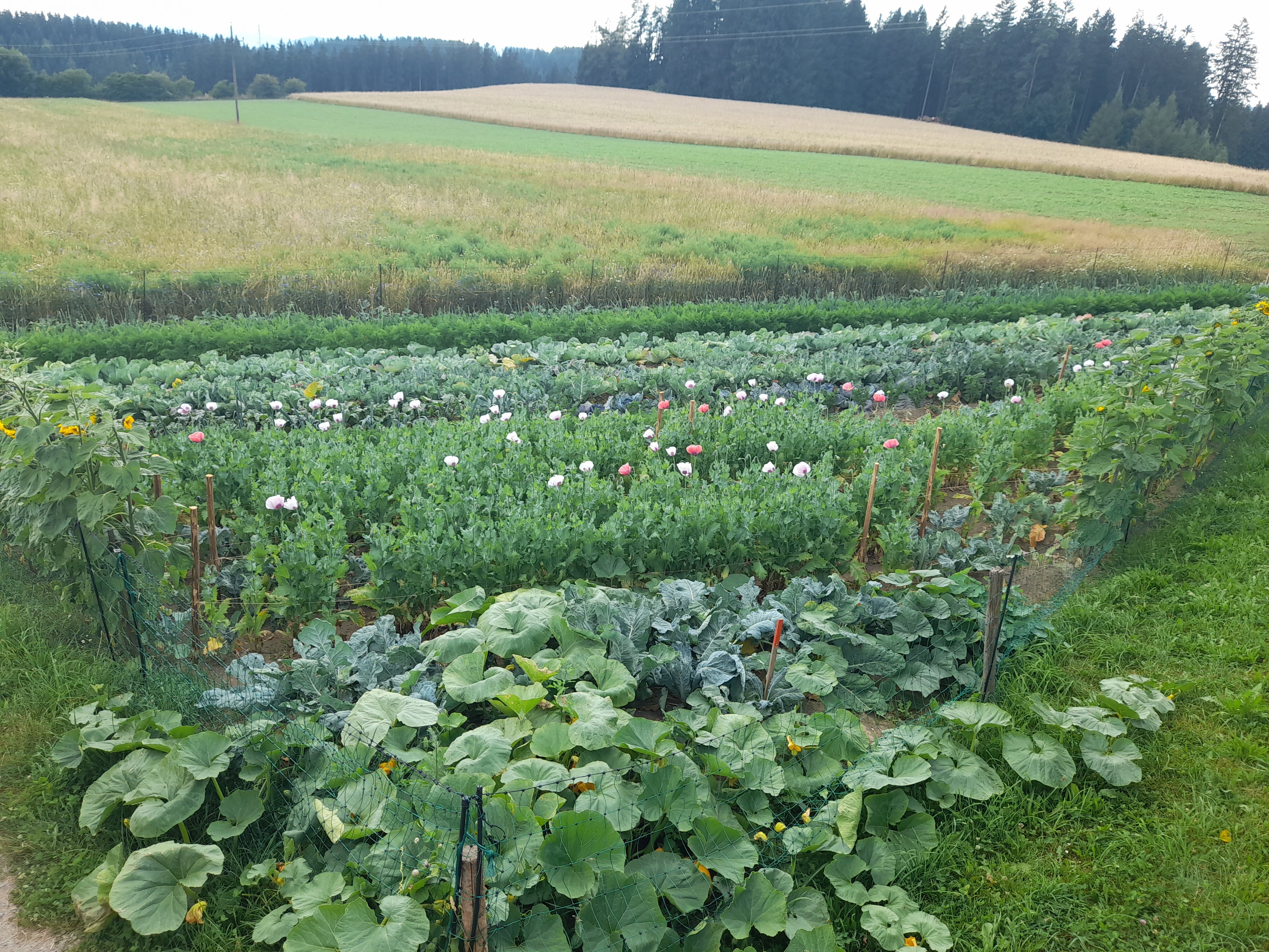 "Ich bin die Voit Helene, hier zu Hause im Guttau im Mühlviertel. Wir haben jetzt Mitte Juni und wir haben unseren Kompooster komplett entleert, den wir vor ziemlich genau einem Jahr angesetzt haben. Ich habe das jetzt erst im Frühling dann verwendet als Urkomposterde, um eben alle anderen Hochbeete, Gemüseacker, Gemüsebeete, Blumenkistln, Kräuterbeete, Gewächshäuser und so weiter einfach mit einer Schaufel immer wieder zu informieren. Ich habe das überall reingemischt, habe AM+PLUS Aktive Mikroorganismen unter anderem auch verwendet, ganz viel Basalt gestreut, das dritte Jahr jetzt mittlerweile. Und wir sind, obwohl es eigentlich wirklich ein sehr nasser Frühling ist, schneckenfrei. Das bedeutet, wir haben keine orangen Schnecken. Voriges Jahr sind wir noch Schnecken checken gegangen. Heuer ist das Geschichte. Ein paar Weinbergschnecken, die dürfen bleiben. Und es wuchert und gedeiht und ich kann euch noch kurz zeigen, wie es ein bisschen in meinem Garten ausschaut."